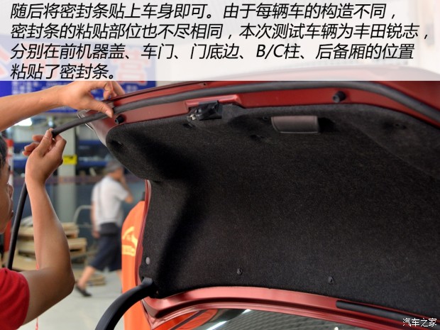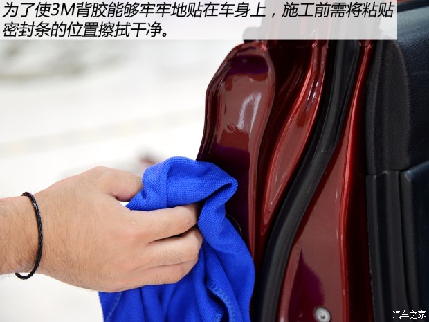为了保证实验的严谨性,我们前往了专做汽车隔音的商家处进行安装,安装过程很简单,只需先擦拭密封条安装部位,随后将密封条粘上即可,全车安装密封条大约需要30分钟。