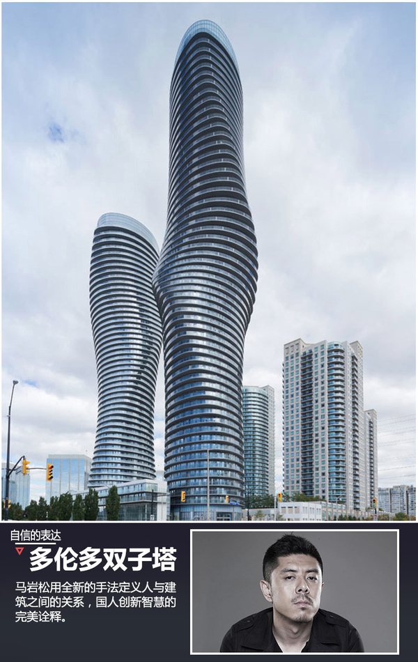 梅晓群:在调研中我们还发现,“悦,创造奇迹”是中国社会主义基因非常自信的一种表达,在这里我想举一个中国建筑师马岩松的例子,他是第一个在海外赢得重要地标性建筑设计权的中国建筑师。在2006年,他击败了全球70个国家的91份提案,用颠覆传统的设计在加拿大多伦多建起双子塔,代表中国建筑设计师一举赢得了国际话语权。用全新的手法定义人与建筑之间的关系,这是中国人创新智慧的完美诠释。