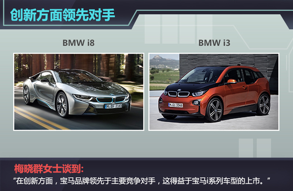 梅晓群:在今年大家已经看到了全新BMW 7系的消息,大家也知道一些i8上的技术会应用到全新BMW 7系的旗舰产品上去。在这件事情上我们可以看到BMW这个品牌不仅仅把这些超前的技术和想法用在概念车上、停留在想法阶段,更重要的是付诸实践,把这些变成事实,这就是“悦,创造奇迹”把BMW这个品牌和中国的主流基因能够结合起来的最为坚实的基础。