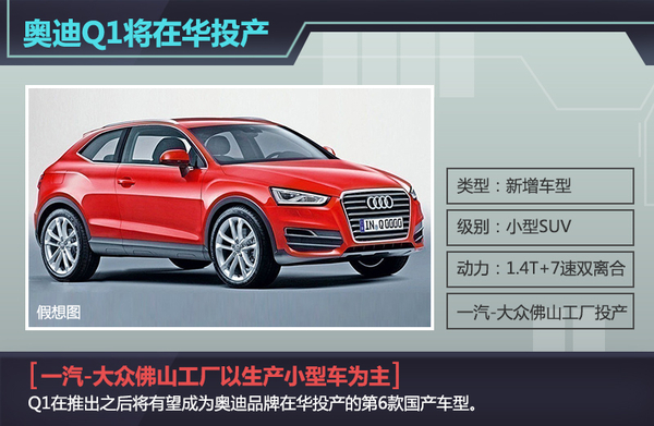 通过假想图不难发现,奥迪Q1在外观方面很像是增高版的A1,“大嘴”中网和略显圆润的车身依然具有鲜明的奥迪品牌特点。目前在奥迪A3和Q3以及大众品牌多款车型上已得到广泛应用的EA211系列1.4T高功率四缸直喷发动机将在奥迪Q1上进行搭载。这款发动机最大功率110kw、峰值扭矩250Nm,不仅具有优异的燃油经济性,而且有着十分强劲的动力表现。而在传动系统方面,奥迪Q1将有望匹配S-tronic 7速双离合变速箱。另外值得一提的是,奥迪还有望基于Q1推出e-tron插电混动版车型。