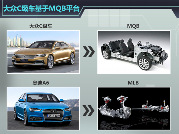 据了解,大众全新C级车作为一款定位在帕萨特和旗舰轿车辉腾的全新产品,旨在进一步提升上海大众品牌形象,并与其它合资C级车相竞争。新车以奥迪A6为蓝本进行打造,不过并未采用A6所使用的MLB平台,而是在MQB模块化平台下进行研发,从而进一步缩短产品的研发周期以及制造成本。