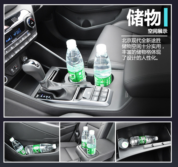 北京现代紧凑型SUV全新途胜的车内储物空间十分实用,前排两个车门的储物槽空间非常大,可以放置水杯、手机等物品。前排中央扶手处可以放置至少两个500ml的水杯,并且前排中央扶手区也可放置眼镜盒等物品。全新途胜储物空间极为丰富,体现了设计的人性化。值得一提的是,新车全景天窗的尺寸尤为可观,长度达1240mm,宽度则为740mm,保证了车内充足的采光,假期外出旅游时打开全景天窗,仰望蓝天白云,一定会是一段难忘的旅程。