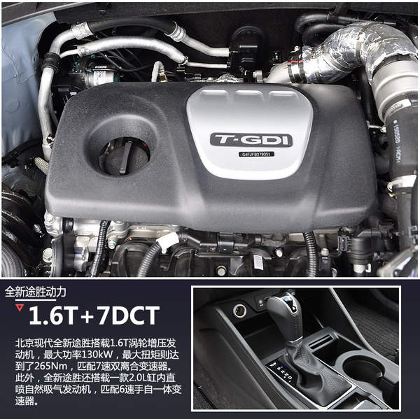 动力方面,北京现代全新途胜搭载1.6T涡轮增压发动机+7速双离合变速器的“黄金动力组合”,新车成为继北京现代旗下第九代索纳塔之后第二款搭载1.6T增压发动机的车型,这款发动机动力输出强劲,最大功率130kW,最大扭矩则达到了265Nm。此外,全新途胜还搭载了一款2.0L缸内直喷自然吸气发动机,匹配6速手自一体变速器。从官方数据看,全新途胜1.6T车型的百公里综合油耗仅为6.9L,与现款ix35 2.0L车型相比燃油经济性提升15%,值得一提的是,新车油耗甚至比目前同级别车型中非常省油的福特翼虎1.5T车型还要低0.3L。