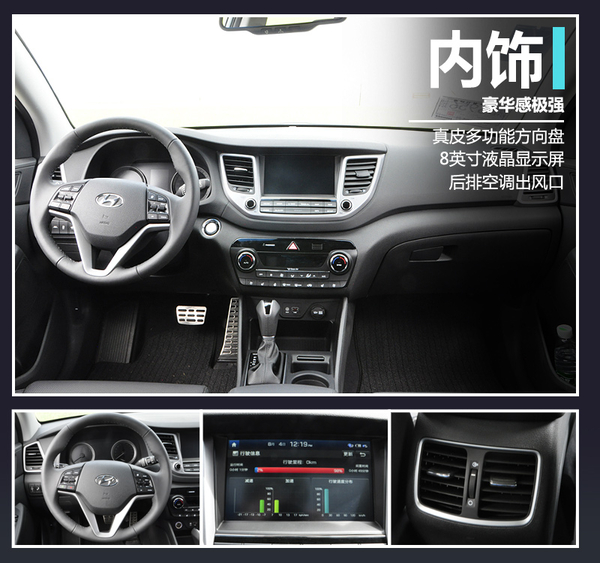 在内饰方面,全新途胜可谓豪华感十足,新车中控台和车门上大部分地方采用了软材料覆盖,无论是材质和做工都非常扎实。平面设计的仪表盘简约内敛,醒目的彩色LCD显示器大幅提升新车档次感,8英寸触摸屏集成了导航、影音、倒车影像等多项功能,操作便捷,看上去同样很有面子。