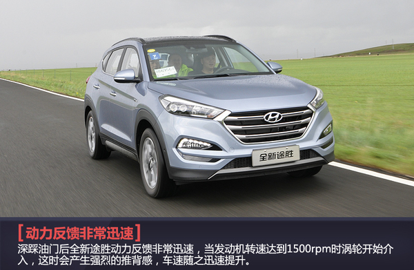 本次笔者试驾的是1.6T车型,搭载这款1.6T增压发动机后,全新途胜的动力表现确实非常出色。深踩油门后全新途胜动力反馈非常迅速,特别是当发动机转速超过1500rpm时涡轮便开始介入,这是会感觉到强烈的推背感,车速伴随着悦耳的发动机轰鸣声迅速提升。此外,7速双离合变速器的搭载使得新车换挡非常平顺。