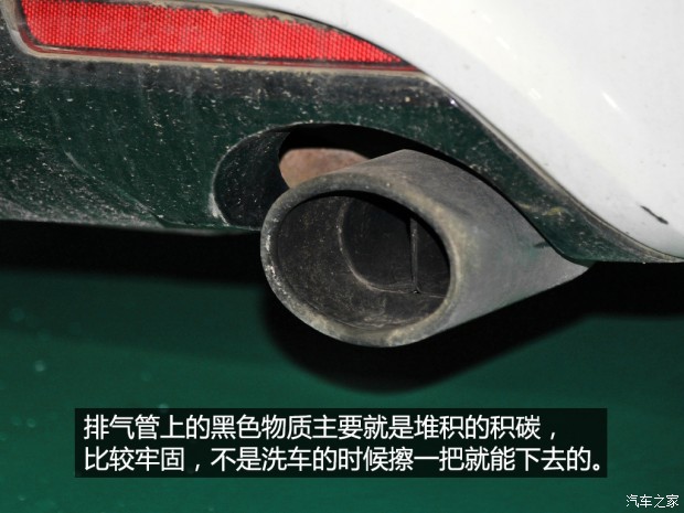 排气管上那层黑黑的物质不容易清洗掉(很多涡轮增压车型更为明显),这层黑色的物质就是发动机做工后排出来的没有完全燃烧的物质,原地怠速、低速爬行、冷车启动这些状态下发动机的燃烧是不充分的,这时候油气混合气比较浓,尾气中的碳含量很高,这些碳颗粒夹杂着机油蒸汽等物质就会附着在它经过的地方,时间长了排气管自然也会有,如果排气管是外漏式设计,我们就能看到排气管出口变成黑黑的样子。