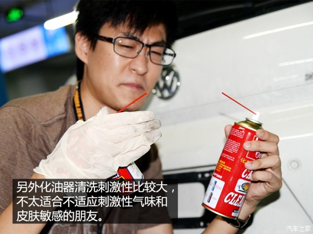 作业之前需要注意两个事儿,一个是别刚跑完了就动手擦,运行后的车辆排气管温度很高,别烫着手,另外一个就是用任何化清类产品都建议带上手套。