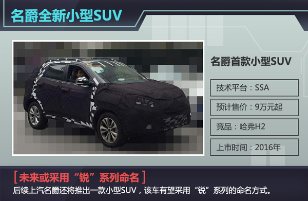 在上汽名爵的未来规划中,还将推出一款全新小型SUV,其也将成为继名爵锐腾之后发布的第二款SUV车型。可以预见的是,该车同样会采用中文命名方式。在此我们不妨大胆预测一下,名爵首款小型SUV的命名会在“锐景”和“锐意”二者中产生。