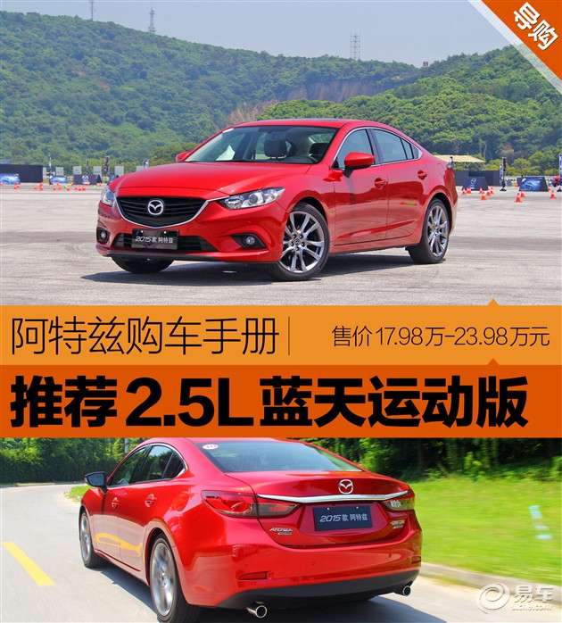 前不久,一汽马自达正式发布了2015款阿特兹,虽然售价区间相同,外观内饰设计变化也不大,但其增加了一款2.5L蓝天运动版新车型。作为2.5L车系的全新入门车型,19.98万元的售价不仅拉低了入门门槛,而且还提升了产品竞争力。2015款阿特兹车型细化的同时,也给同级竞争对手带来更大压力。究竟2015款阿特兹的六款车型,哪一款最值得您出手,咱们一起往下看。