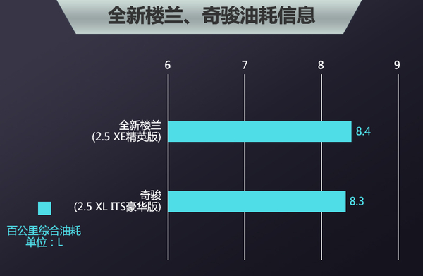 由于全新楼兰2.5 XE 精英版和奇骏2.5 XL ITS 豪华版的整备质量和动力系统几乎相同,并且两车动力系统匹配的都是新一代Xtronic CVT无级变速器,因此二车在百公里综合油耗方面也基本持平,全新楼兰2.5 XE 精英版油耗仅仅多出0.1L,对于一款中型SUV而言,8.4L的百公里综合油耗确实值得称赞。