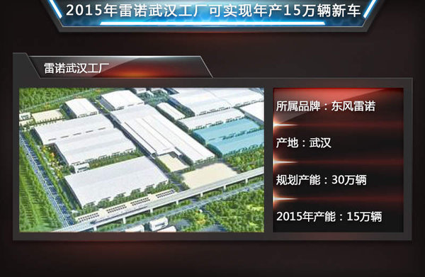 今年初,东风与雷诺正式签订东风雷诺汽车有限公司合资经营合同,并于2014年1月26日获得国家商务部批准。这宣布雷诺正式开始进军中国,不过由于此前的三江雷诺问题,目前东风雷诺只能生产SUV车型。据了解,东风雷诺新工厂整车规划生产能力为年产30万辆,其中一期将实现年产15万辆整车和15万台发动机。整车工厂包括冲压、焊接、涂装、总装、树脂五大车间和相应的辅助设施;发动机工厂包括缸体和缸盖铸造、机加工,发动机装配、试验和相应的辅助设施。