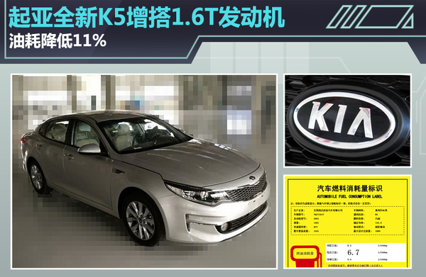 东风悦达起亚旗舰轿车全新一代K5已在今年四月举办的上海车展中正式发布,新车轴距加长10mm,相比于现款K5而言内部乘坐空间将更为宽敞。日前,网通社从国家工信部了解到:东风悦达起亚全新K5将增搭小排量的1.6T涡轮增压发动机,新车百公里综合油耗降低至6.7L。现款K5 2.0L车型油耗为7.5L,全新K5与之相比燃油经济性得到了11%的提升。
