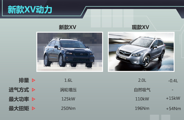 当前国家排放标准日益严格,而小排量增压引擎具有动力强劲油耗低等优点,因此各大厂商纷纷推出小排量增压引擎车型。斯巴鲁旗下老款傲虎搭载的是2.5L和3.6L自然吸气发动机,全新傲虎则针对中国市场采用了2.0T引擎,以取代原有的3.6L。基于XV定位更低,该车有望采用较2.0T更小排量的增压引擎,满足国内消费者需求。事实上,斯巴鲁目前已有1.6T引擎技术储备,该引擎已在Levorg上成功应用。近日,网通社从斯巴鲁汽车内部人士了解到:改款XV将搭载1.6T涡轮增压发动机,从而实现更低的排放。