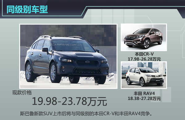 目前小SUV市场日趋火爆,越来越多的消费者选择购买小SUV车型。其中本田CR-V和丰田RAV4等车型都有着不错的市场表现。值得一提的是,这两款车与现款XV都推出了2.0L车型。就价格来看,现款XV价格区间相对CR-V和RAV4来说更加亲民,虽然入门级车型价格略高,但顶配车型价格低于两者。新款XV上市后将与这两款标杆车型竞争。