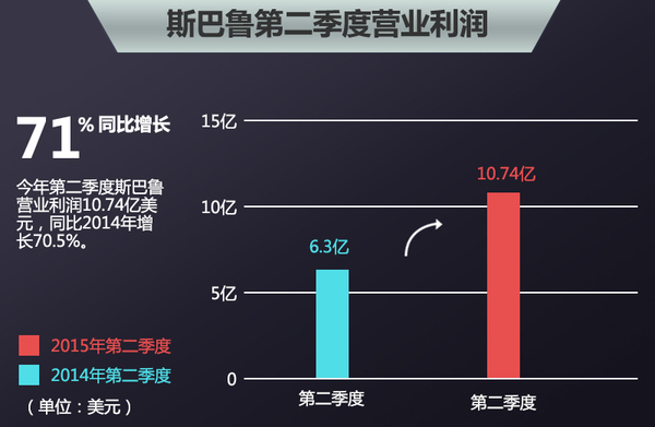 日前,日本富士重工业株式会社( FHI )对外公布了旗下汽车制造公司斯巴鲁第二季度的财报。第二季度斯巴鲁营业利润达10.74亿美元,相比去年同期6.3亿增长了70.5%。今年第二季度得益于北美市场销量的增长,营业利润实现大幅度提升。