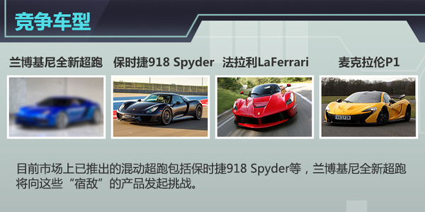 受制于越来越严格排放标准和油耗控制,越来越多的超跑制造商开始应用涡轮增压技术及混动技术。目前市场上已推出的混动车型包括保时捷918 Spyder、法拉利LaFerrari 、 麦克拉伦P1等。兰博基尼全新混动超跑推出后将向这些“宿敌”的产品发起挑战。凭借后发优势,兰博基尼有更多的时间研究竞品,旗下全新车型性能表现有望超越竞品。