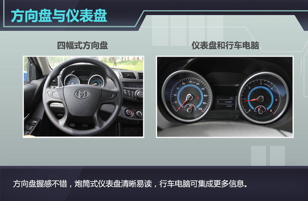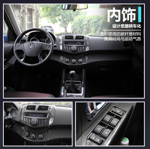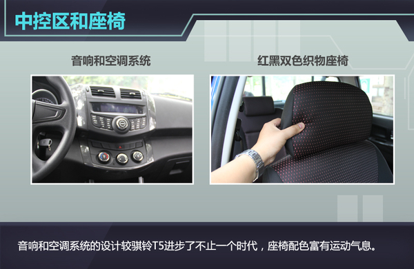中控整体设计采用双层布局,层次分明且不落俗套。四辐式方向盘样式经过了大幅优化,一改T5车型呆板的形象,质感不错而且拇指位有突起,握上去舒适性不错。多功能方向盘和安全气囊仍然缺席,稍显遗憾。双炮筒仪表盘运动感十足,配色清爽,数字大小适中。行车电脑仅能显示时间、行驶里程、车门打开状况等信息,功能性有待丰富。