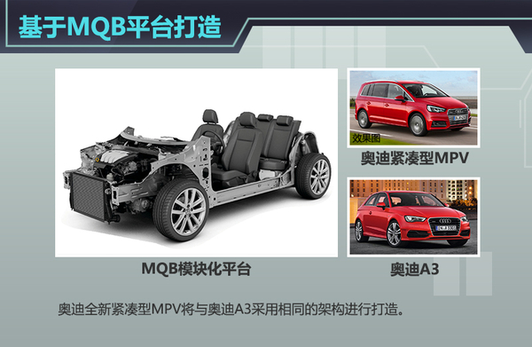 根据从海外媒体获得的消息,奥迪全新紧凑型MPV将基于大众集团最新的MQB横置发动机模块化平台进行打造,与奥迪A3采用相同的架构。大众MQB平台的开发借鉴了大众集团多个平台的技术成果,成为该集团横置发动机车型研发制造模式的转折点。这一模块化平台将大量的汽车零部件实现标准化,令它们可以在不同品牌和不同级别的车型中实现共享。所以,这一技术的应用将极大地降低车型的开发费用、周期以及生产环节的制造成本。