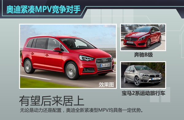 “德系三强”之间的竞争大家有目共睹,显然奥迪这款定位于紧凑型市场的MPV在推出后将与奔驰B级和宝马2系运动旅行车进行竞争。从海外网站绘制的效果图我们还能看到,除LED头灯之外,奥迪全新紧凑型MPV还有望采用自适应巡航系统以及quattro四驱系统等多项高端先进配置。对于奥迪而言,虽然在这一细分领域并未占得先机,但强悍的产品竞争力将有望使其后来居上。(网通社2015年8月19日北京报道)