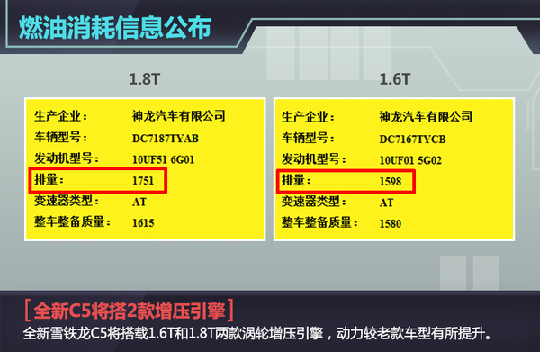 C5作为东风雪铁龙品牌的旗舰级车型,动力布局上搭载了1.6THP、2.0L、2.3L三款发动机,随着1.8THP发动机的投产,该发动机将在更多车型上使用。近日,网通社从国家工信部获悉:东风雪铁龙全新C5将搭载该战略中的1.6THP和1.8THP两款涡轮增压发动机。在下月成都车展全新C5将正式上市,届时2.3L自然吸气发动机将有望被1.8THP引擎所代替,动力方面有望大幅提升。