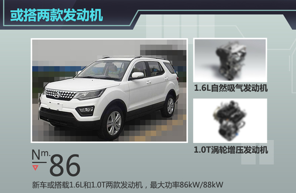 此新车还有望搭载长安汽车自主研发的1.0T涡轮增压发动机。长安汽车目前正大力推广这款小排量增压发动机,将率先搭载在年内上市的MPV——欧尚上。这款发动机采用三缸设计,包含了目前比较先进的缸内直喷和DVVT进排气气门连续可变正时技术,最大功率达到了88kW,峰值扭矩180Nm,动力参数上不输1.6L自然吸气发动机。