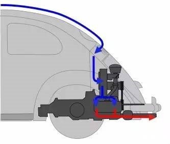 ▲甲壳虫动力单元示意图,空气从后部吸入发动机和冷却系统