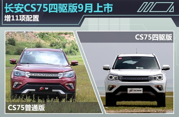 依托国内SUV热,长安汽车近两年推出的SUV均表现不俗。长安去年推出的CS75目前已跻身自主紧凑级SUV销量一线阵营,月销过万。长安汽车日前发布消息:在今年的成都车展,CS75四驱版将上市。近日,网通社获得CS74四驱版配置信息。四驱版车型仅推出1.8T车型。值得一提的是,相比两驱版车型,四驱版的CS75新增了11项高端配置。