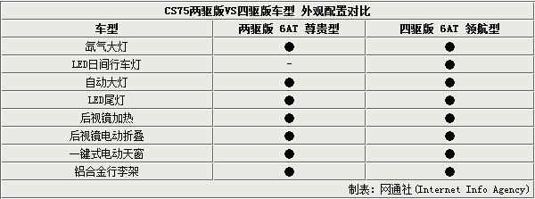 外观方面,长安CS75四驱版的外形设计与目前在售车型基本保持一致,包括氙气大灯和LED组合式后尾灯,以及一键式双模防夹电动天窗等。值得一提的是四驱版领先型和尊贵型上新增了双环式LED日行灯。对中国消费者而言,这不仅仅是一项安全配置,更是一项提升“逼格”的利器。在车身颜色选择方面,四驱版还新增了全新琥珀金可供消费者选择。