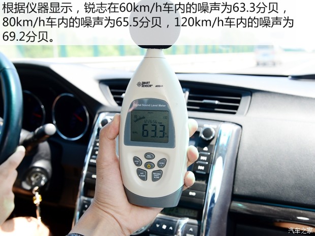 本次的测试车辆为锐志,对于原厂锐志来说,高速路噪大是它的弊病。为了使测试数据更加精确,我们特意找到一条车流量很少且路况较好的高速公路上进行测试,测试结果为60km/h为63.3分贝,80km/h为65.5分贝,120km/h为69.2分贝。
