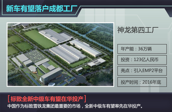 在标致雪铁龙集团眼中,中国无疑是全球最重要的市场,此前标致推出的全新301车型就第一时间在华投产,而未来将推出的中级车501也有望在神龙第四工厂进行投产。未来神龙第四工厂建成后将引入PSA最新研发的EMP2平台,该平台技术是PSA集团最新研发的高效模块化平台,也是旗下高端产品所采用的技术。