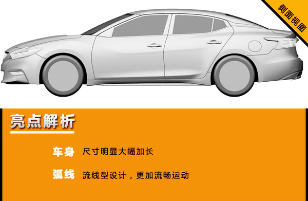 从新车侧身来看,车身尺寸明显增大,显得更加修长,也使得车内空间进一步加大,满足消费者对车内空间的需求。同时整车线条流畅,运动感十足,侧身突出的线条修饰使得新车更加有型。全新天籁尾部造型依然延续了现款车型的设计风格,尾灯与前大灯相呼应,采用回旋镖式设计,后保险杠更加突出,整车从后面看起来更加饱满。