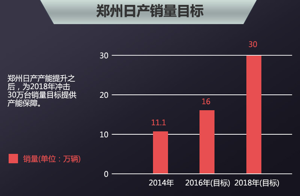郑州日产旗下日产和东风两大品牌2014年整体销量完成了11.1万台,相比2013年的11.8万台略有回落。今年3月份,郑州日产东风风度品牌首款车型MX6正式推出,该车凭借日产先进技术受到认可。正是基于新产品的不断导入,郑州日产对未来发展仍充满信心,并将2018年的销售指标定在了30万台。