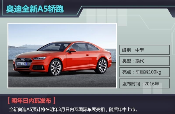 作为奥迪家族中一个全新系列,奥迪A5自2007年面世以来以其运动轿跑设计以及优良的操控性能俘获了追求速度年青一代的芳心,推出至今历经5年并未换代,只是进行了中期改款,日前,网通社从欧洲媒体Inautonews获悉,奥迪A5将换代,且其效果图再次曝光,新车预计将在明年3月日内瓦国际车展亮相,随后年中上市。