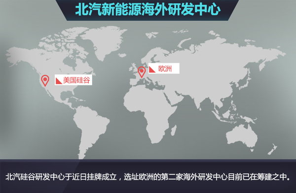 北汽新能源总经理郑刚表示:“北汽新能源一直坚持开放式的平台化集成技术创新策略。“据悉,目前北汽新能源已在国内拥有在京8大高校、国家级科研院所的优势技术资源,以及富士康等产业链合作伙伴的产业实力支持。在海外布局中,硅谷研发中心于近日挂牌成立,选址欧洲的第二家海外研发中心目前已在筹建之中。两家海外研究中心将助北汽新能源吸收引进当地优质研发资源和人才、进行关键与核心技术开发。