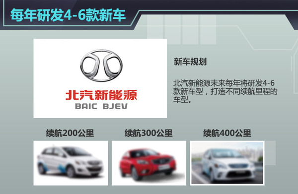 按照规划,北汽新能源未来每年将研发4-6款新车型,打造“2、3、4”(即续航里程200公里、300公里、400公里)、“高、中、低”(即高档、中档、标配三个级别)、“大、中、小”(即车体大小)完整新能源汽车产品组合,为消费者提供更丰富的选择。在基础设施建设方面,目前北汽新能源已完成充电桩建设7000余个,其中包含1600余个公共充电设施。