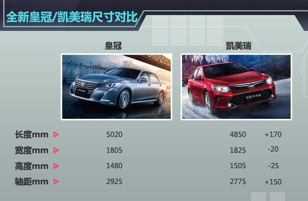 全新皇冠2.0T+时尚版/凯美瑞2.5Q旗舰版尺寸对比