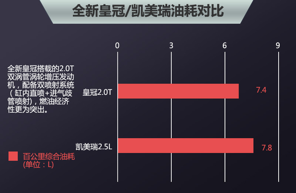全新皇冠2.0T+时尚版/凯美瑞2.5Q旗舰版动力&油耗对比