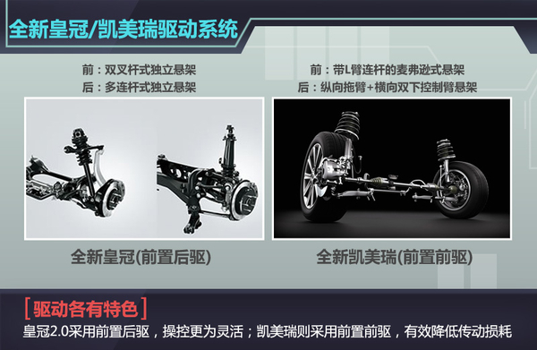 亮点:皇冠-前置后驱凯美瑞-前置前驱