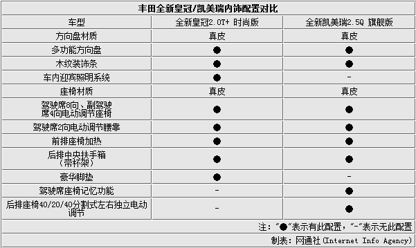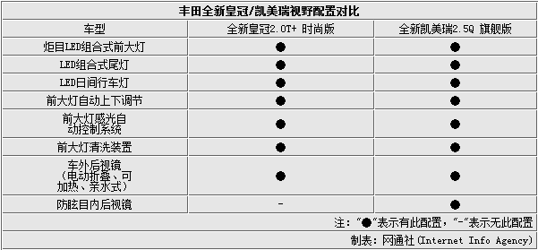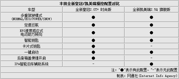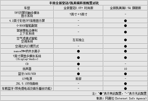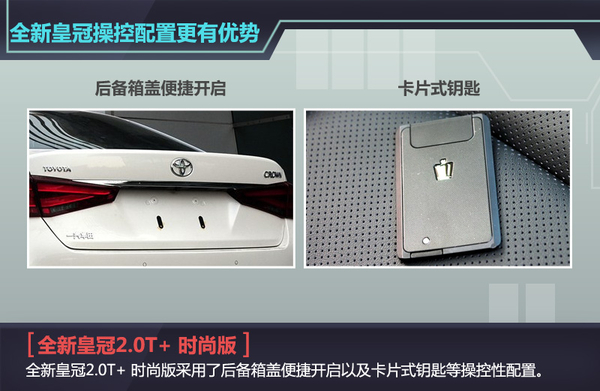 全新皇冠2.0T+时尚版/凯美瑞2.5Q旗舰版配置对比