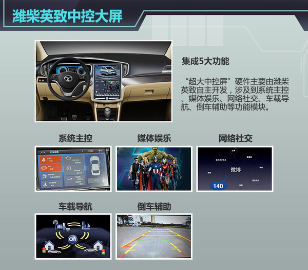 内饰方面,新车内部整体采用了上深下浅的整体配色,并在局部点缀有亮银色的饰条。作为内饰的一大亮点,该车在部分配置车型中装配了一款16英寸液晶显示屏,这也进一步提升了其内饰的科技感。据悉,英致737将装配潍柴汽车开发的Meetwo米图开放系统平台,该系统可实现高清地图导航、手机智能互联等功能。