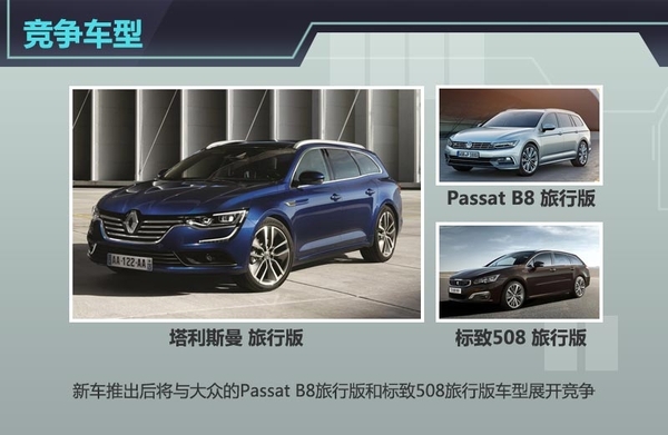 在雷诺品牌的产品线中,塔利斯曼定位于中级轿车,该车是雷诺在轿车领域的旗舰车。目前塔利斯曼以进口的方式引入国内,新一代塔利斯曼无论在外观还是在动力方面均要优于现款产品,同时在使用了1.5T发动机后,车辆入门价格有望进一步下探。在国内进口旅行车市场中,大众进口迈腾一直都是该细分领域中的一款重要产品,未来塔利斯曼旅行车在推出后,有望引入国内市场,法系车独特的设计风格与宽大的空间,有望让这款中型旅行车在市场中脱颖而出。