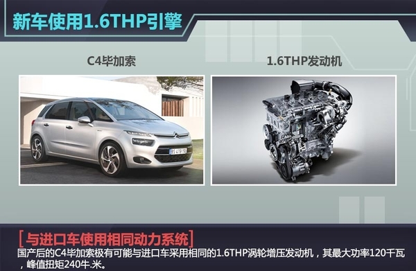 在动力方面,雪铁龙全新大C4毕加索将搭载1.6THP涡轮增压引擎的车型,该发动机由标致雪铁龙和宝马共同研发,采用了直喷技术和单涡轮双涡道设计,最大功率120kW,峰值扭矩240Nm,其在动力性能上明显高于现款车型所搭载最大功率103kw、峰值扭矩200Nm的2.0L自然吸气发动机。(网通社2015年8月28日北京报道)
