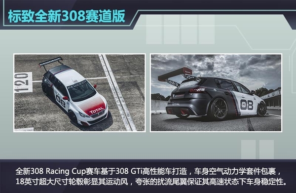作为标致经典赛车RCZ Racing Cup的继任车型,新308 Racing Cup赛车车重不超过1050kg,新车预计将在2016年正式上市,在法兰克福车展之后将在10.24-25日法国进行动态展示。