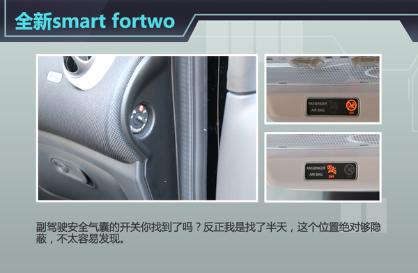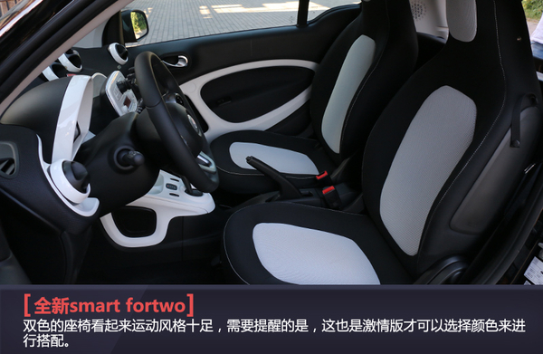 座椅的舒适度非常不错,靠背和头枕采用了一体式设计十分有特点,激情版和灵动版一样都是采用手动调节的方式来调节座椅前后、高低和靠背角度,只看座椅这一个细节,你就能知道这是smart。