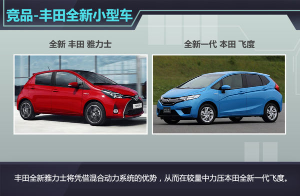 在同级别竞争对手中,本田全新一代飞度是其有力的竞争对手。在两车的较量中,丰田全新雅力士将凭借混合动力总成所爆发出的强劲动力,从而力压全新一代本田飞度,并在小型车市场中确立自己的价值与地位。