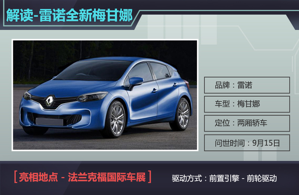 在德系品牌占据主流市场的今日,来自法国的汽车制造商也纷纷携新车加入到该竞争行列之中,其中雷诺作为被广泛关注的知名汽车品牌,也携旗下全新入门级轿车进入公众视野。日前,网通社从海外媒体Motorauthority获悉,雷诺将推出全新紧凑型轿车梅甘娜,并且于9月15日正式亮相。