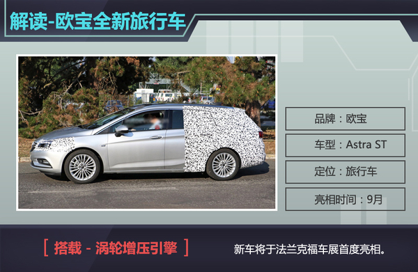 欧宝全新Astra ST将定位于紧凑级旅行车,并且在下月举办的法兰克福车展首度亮相。但值得一提的是:新车将搭载一款动力更为强劲的涡轮增压引擎,从而经前轮将动力传至路面,以展现出强劲的动力表现。