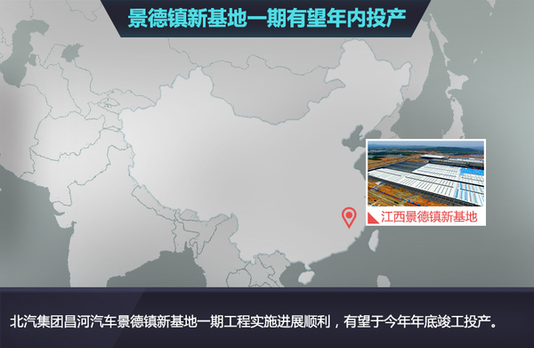 未来昌河汽车生产基地将分别设在江西的九江和景德镇。其中北汽昌河景德镇新基地项目于去年7月奠基,该项目总投资140亿元,全部建成后可达到年产45万辆整车、30万台发动机的规模,基地产品包括交叉型乘用车,小型、紧凑型至中型轿车,SUV,MPV和新能源汽车等级别车型。其中一期工程可年产15万辆整车和15万台发动机,计划在今年年底竣工投产。