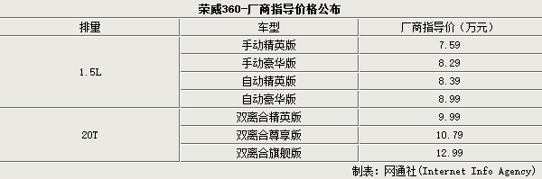 继荣威350、550之后,旗下全新A级车——荣威360将加入产品序列。上汽集团总裁陈志鑫表示,荣威360是一个新的开始,是上汽乘用车基于对新的市场形态和市场规则的判断,基于对互联网时代理性消费趋势的把握而打造的一款全方位高品质的好车。如今,这款车终于迎来发布。网通社从上汽荣威官方获悉,荣威360正式上市,新车共计推出7款配置车型,售价区间为7.59-12.99万元。