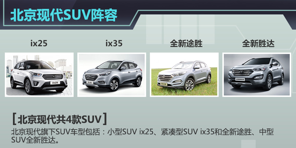 自2010年起,北京现代便将战略中心调整至“D+S”战略—即提升中高级车及SUV销量占比,其中第九代索纳塔、索纳塔经典与名图三车组建的轿车产品线,以及新途胜、ix25、ix35和全新胜达组成的SUV产品线为北京现代去年曾带来可观的市场份额。随着全新途胜的正式上市,北京现代调整期将进入新的阶段,这款定位在ix35和全新胜达之间的SUV为北京现代SUV也增加了新的“血液”。